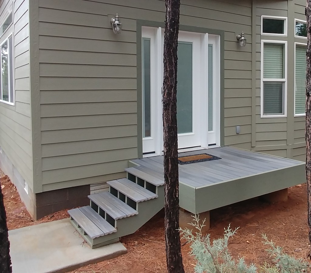 Entry landing with composite treads and narrow step stairs